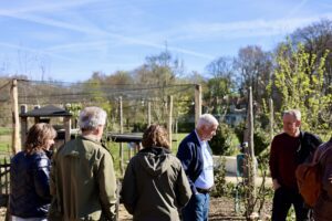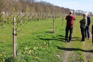 Op woensdagochtend 8 april nam Ronald van der Vight ons mee voor een rondleiding over de Willemshoeve. Ronald is er fruitteler en een van de initiatiefnemers van de herenboerderij. Hij vertelde vol enthousiasme en passie over de Willemshoeve en de initiatieven die er plaatsvinden. De Herenboerderij maakt deel uit van het bredere Landgoed Willemshoeve, een plek waar natuur, landbouw, zorg en educatie samenkomen. Op het landgoed is ook een dagbeleving, de zorgboerderij, waar mensen met dementie dagelijks actief zijn. Daarna is er het Groeipunt Willemshoeve; het educatieve hart van het landgoed.